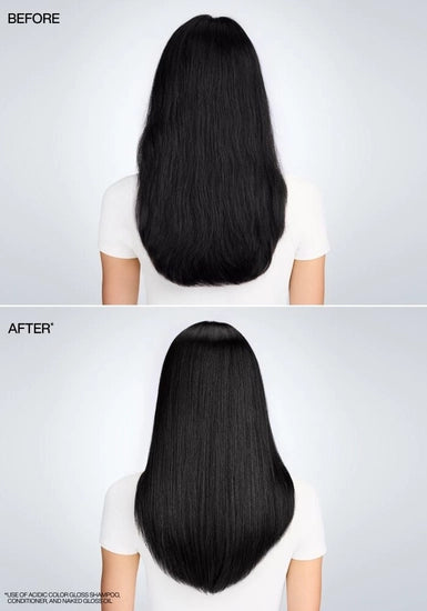 • Acidic Color Gloss tiene fórmulas con pH ácido equilibrado con aminoácidos + vitamina E para ayudar a sellar la cutícula y fijar el brillo para proteger el color de la decoloración y el opacamiento causados por el agua y el calor.