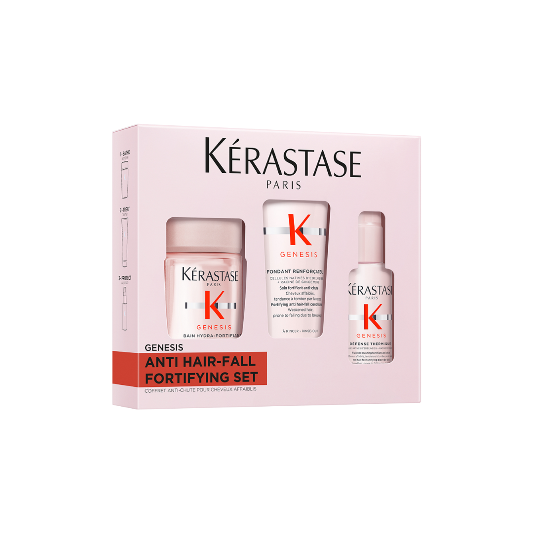 Este Kérastase Holiday Set para cabello largo con tendencia al encrespamiento Incluye tres Un set de regalo Discovery de champú, acondicionador y spray para secado para tratar el cabello debilitado y dañado. Formulado específicamente para nutrir y proteger los folículos pilosos y promover un cabello más fuerte.