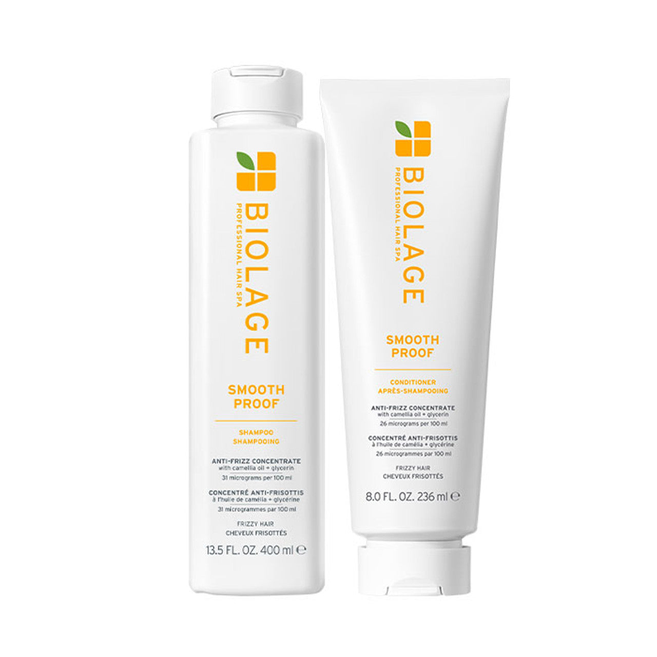El champú SmoothProof, microdosificado con un concentrado de aceite de camelia y glicerina, proporciona la cantidad perfecta de nutrición y limpieza para controlar el cabello con tendencia natural al encrespamiento.