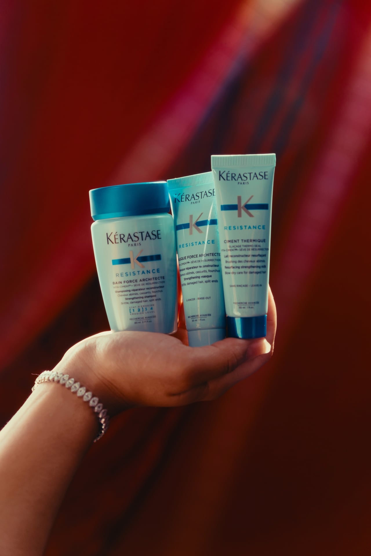 Kérastase Resistanse Force Architect: Shampoo, mask, Leave-In / Curl Manifesto: Shampoo, conditioner, oil (puede variar entre una caja y otra).