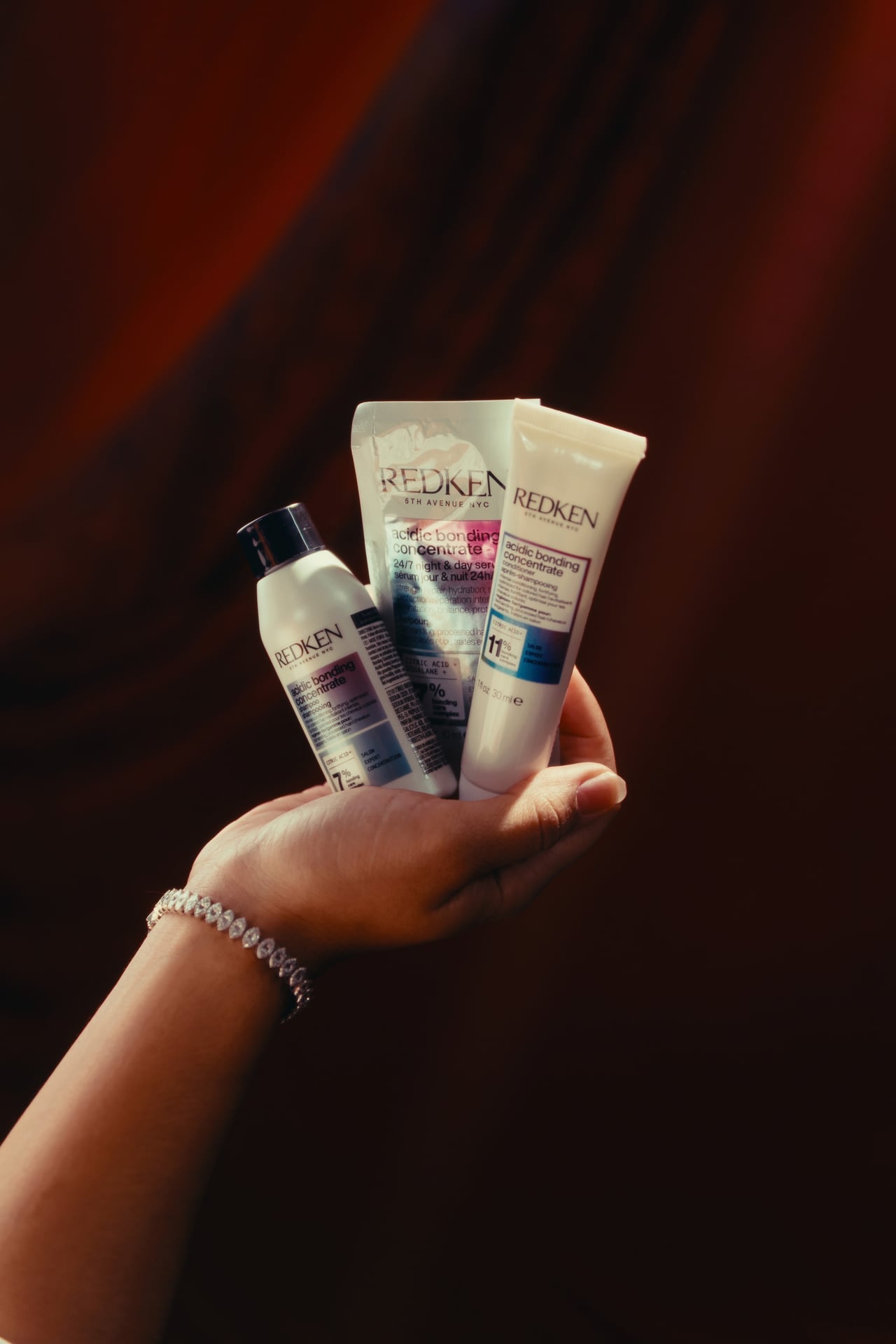 Redken Acidic Bonding Color Concentrare: Shampoo, Conditioner, Serum.
